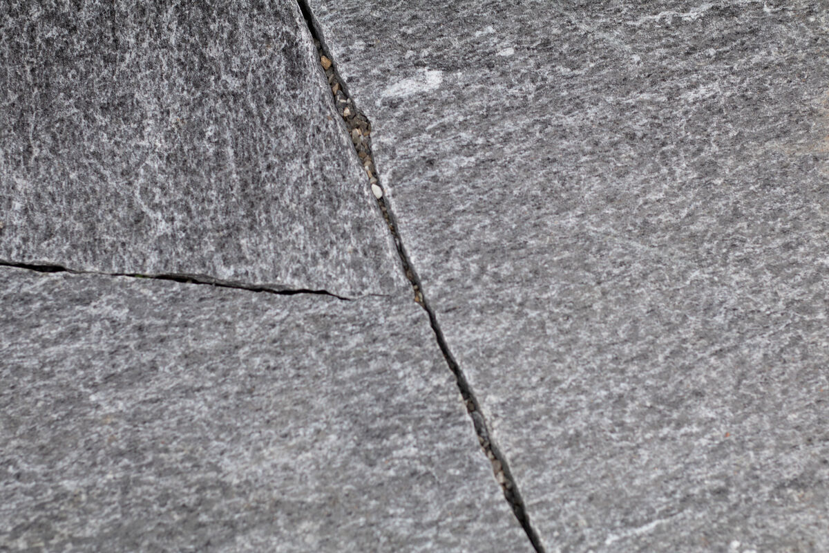 Bodenplatten formwild Oberfläche: Naturgespalten Kanten: roh zum Teil mit bohrlöchern Stärke: 6 - 7 cm Stk/m2: 1 - 2 Stk/m2