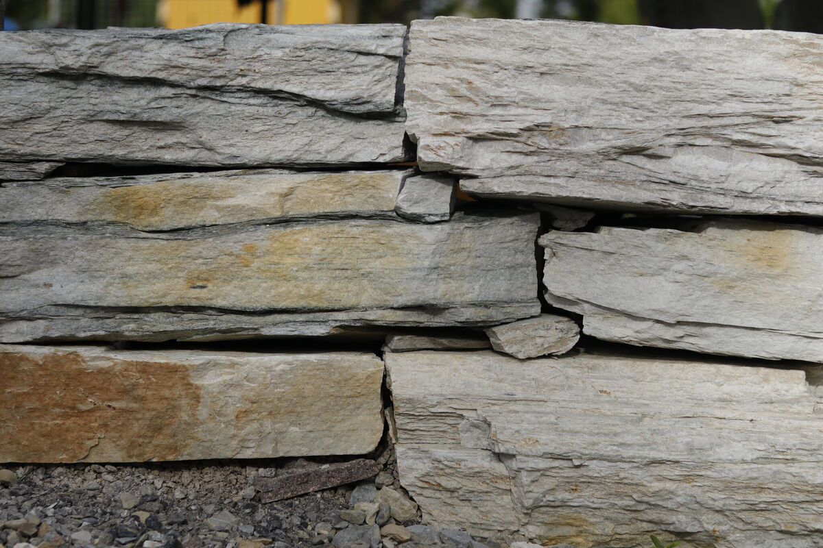 Kleinmauerstein Höhe: 15-24 cm Tiefe: 20-50 cm Länge: 30-70 cm Oberfläche: Gespalten Kanten: Gebrochen