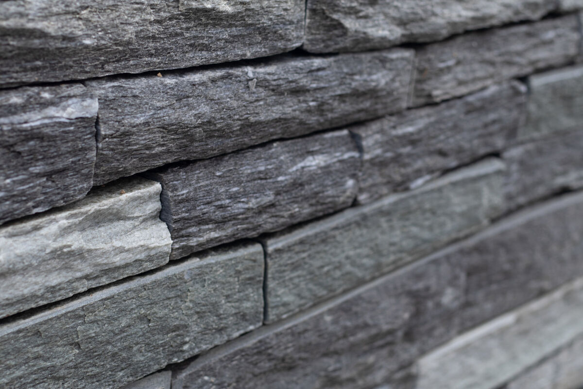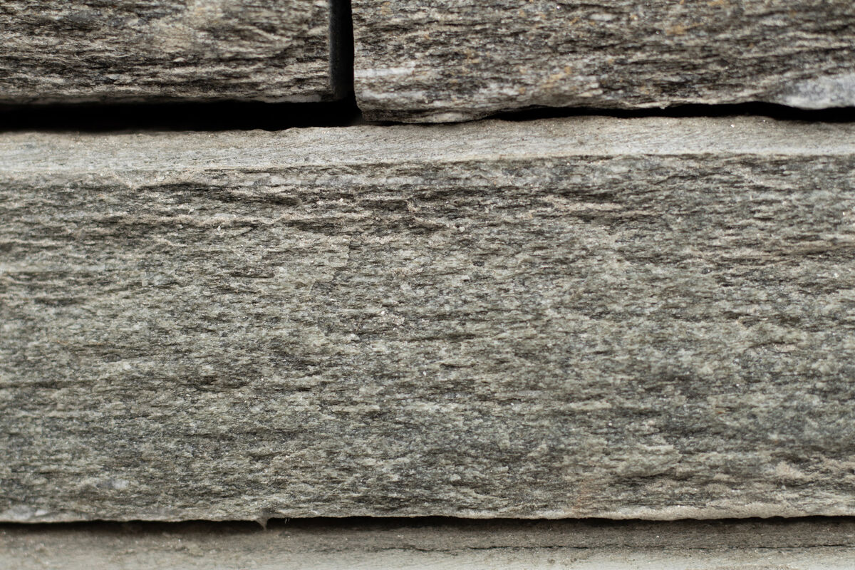 Glimmergneis/-Schiefer aus Vals im Kanton Graubünden. Der Stein ist grau mit hellen Adern (teils Einschlüssen). Er ist frost- ,säurefest und abriebbeständig.